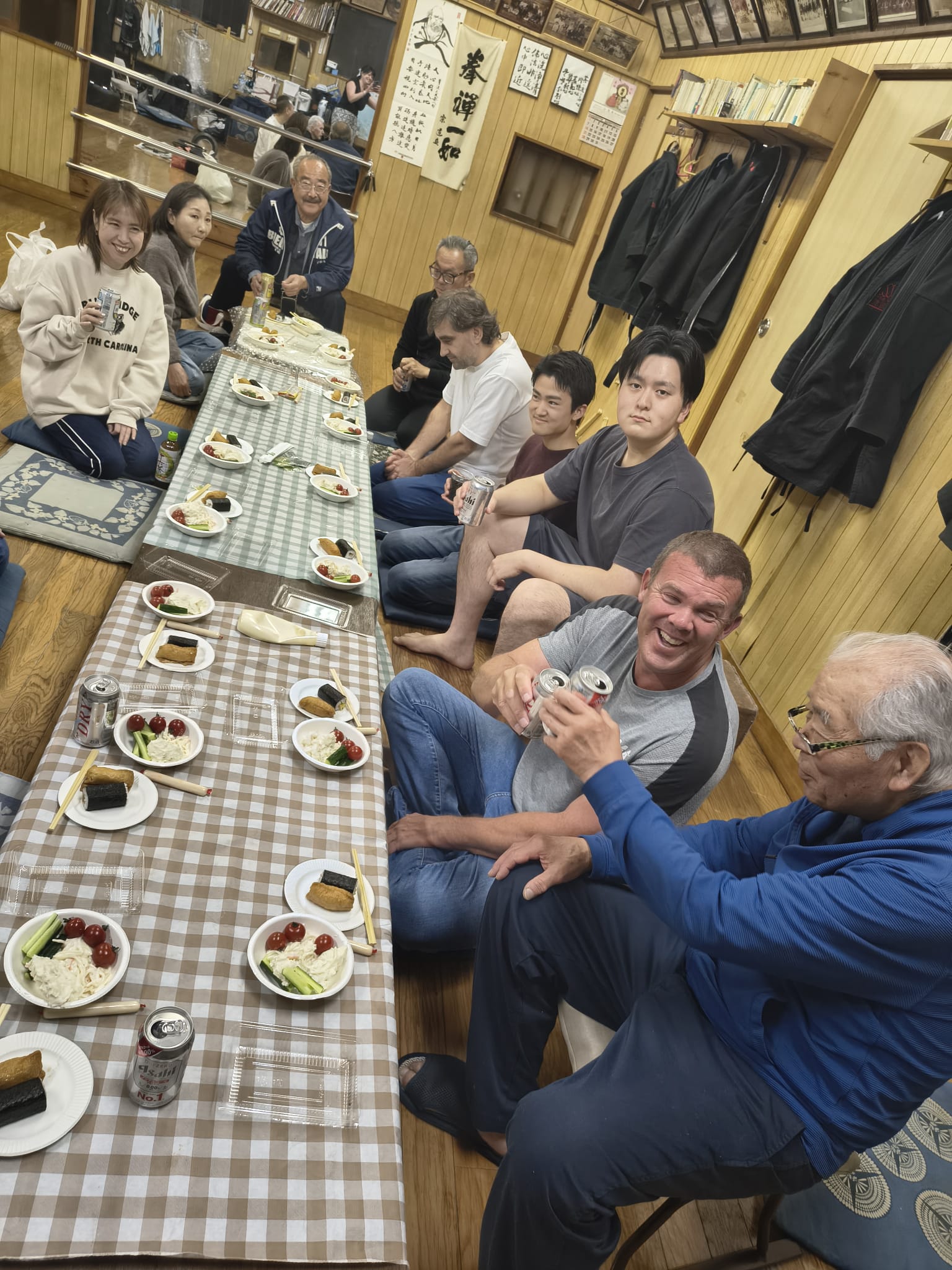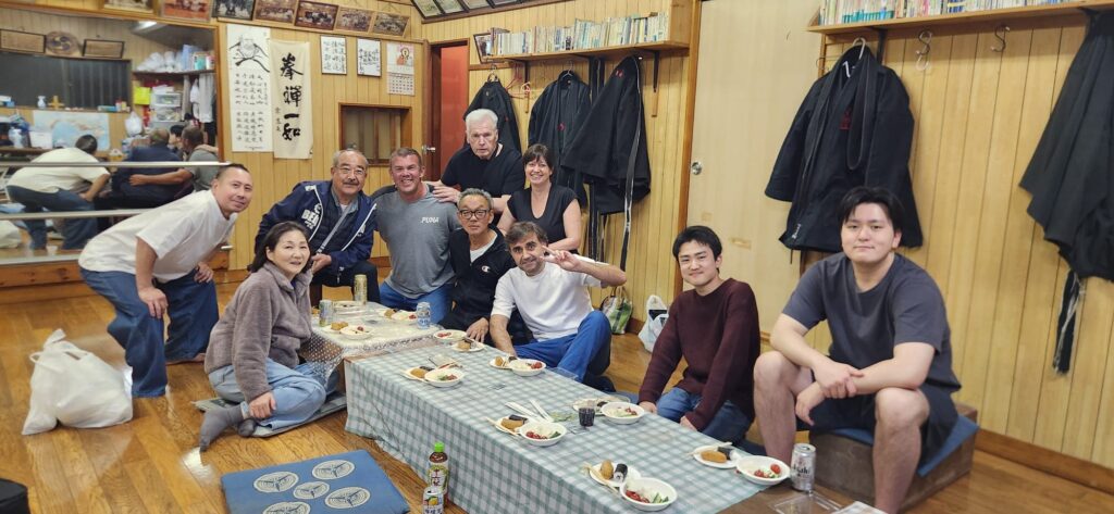 The general class was attended by senior grades from the Seibukan. – including Harada-san, who I hadn’t seen for many years. The class was very relaxed and informal. At the end of the class, each of Yonemoto Sensei’s students demonstrated a kata. Saifa was demonstrated by Debbie, I chose Seiunchin.