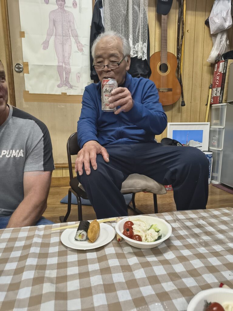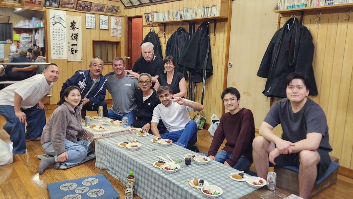 The evening was rounded off with a very friendly party with food and drink provided and we were spoilt by Tamaki Sensei, who cooked a variety of delicious food that he had spent a long time preparing. I was delighted when my very good friend Yazaki-san and also Harada-san’s wife arrived to join the celebration.